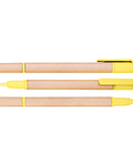 Bolígrafo Ecológico de cartón reciclado con destacador de color. Escritura azul.