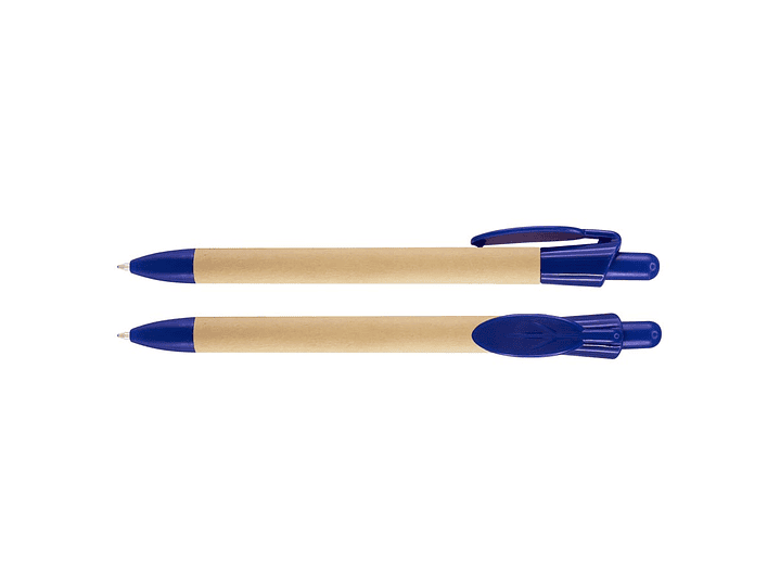 Bolígrafo Ecológico "Leave" con cuerpo de cartón reciclado y clip plástico PET biodegradable con forma de hoja. Escritura azul.
