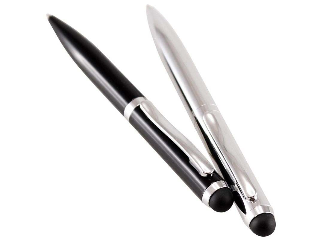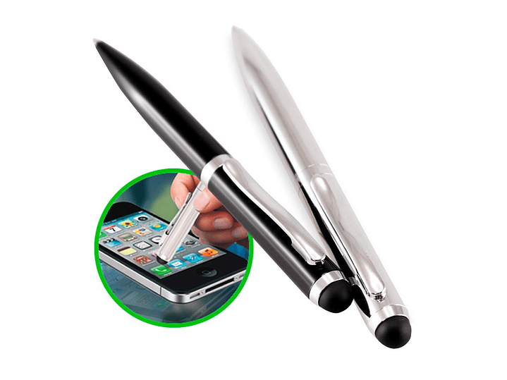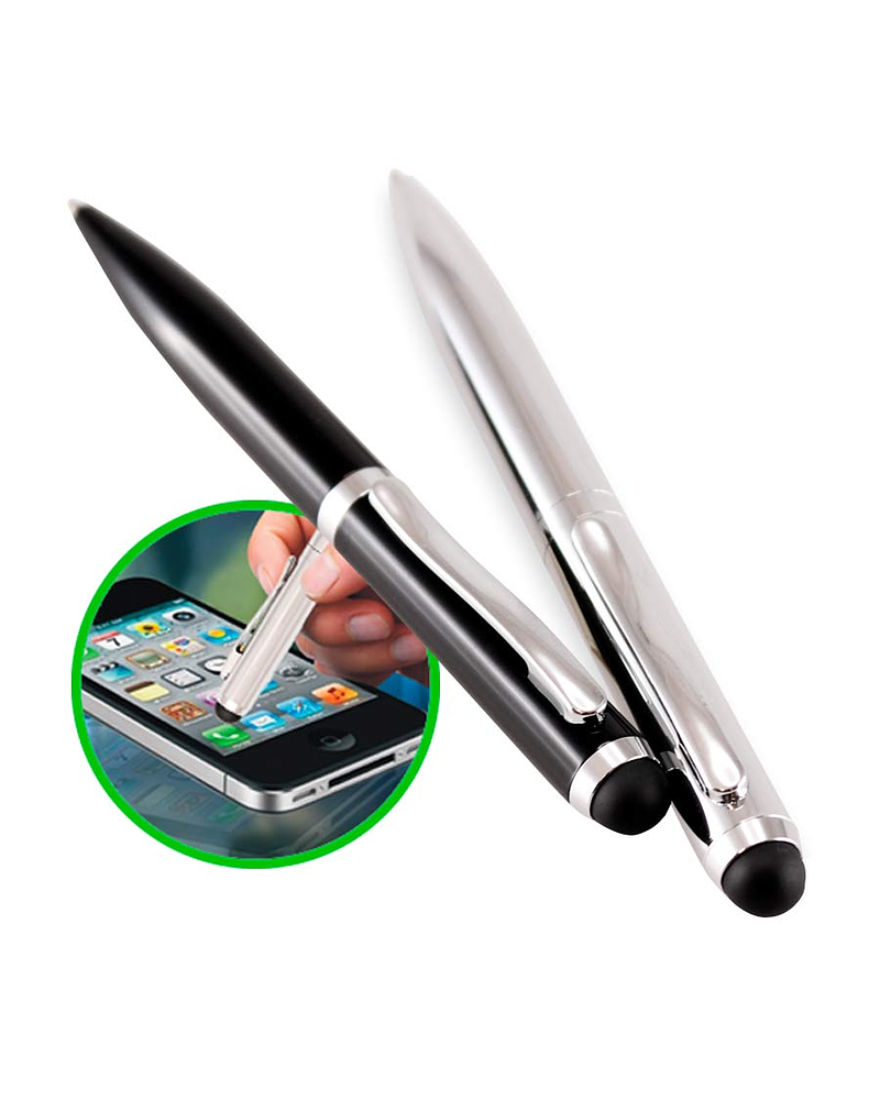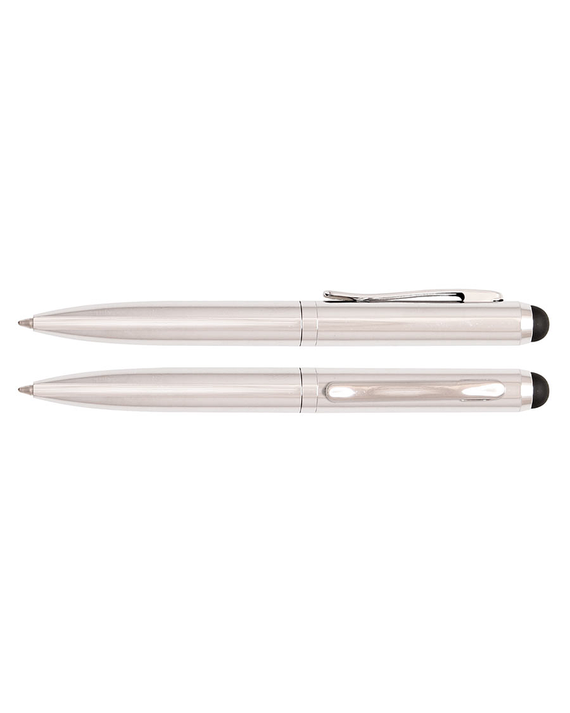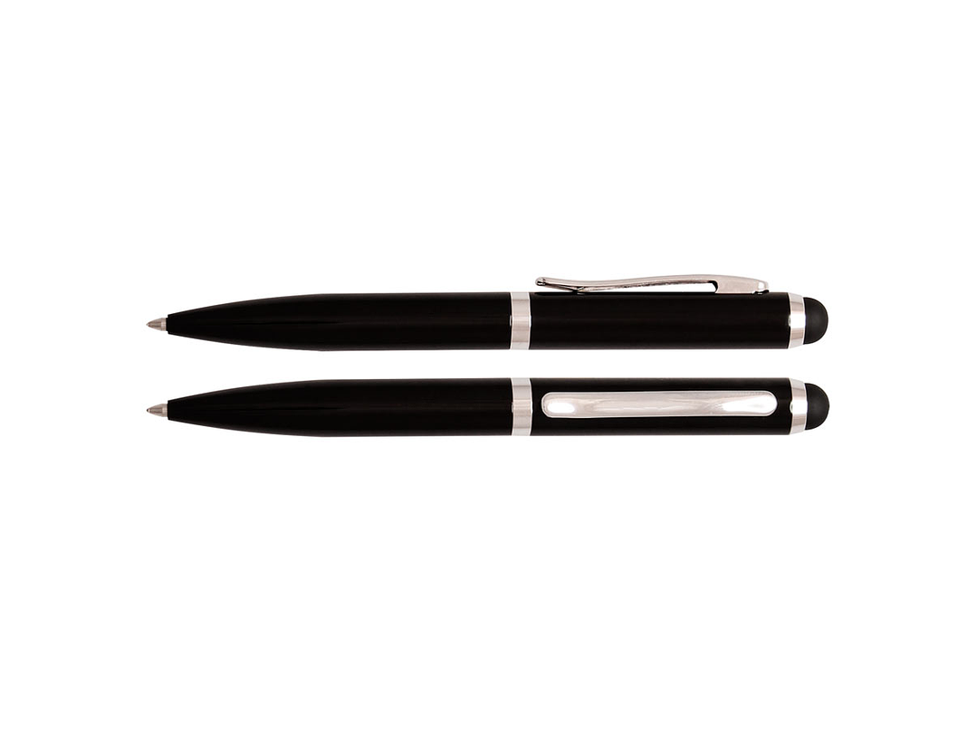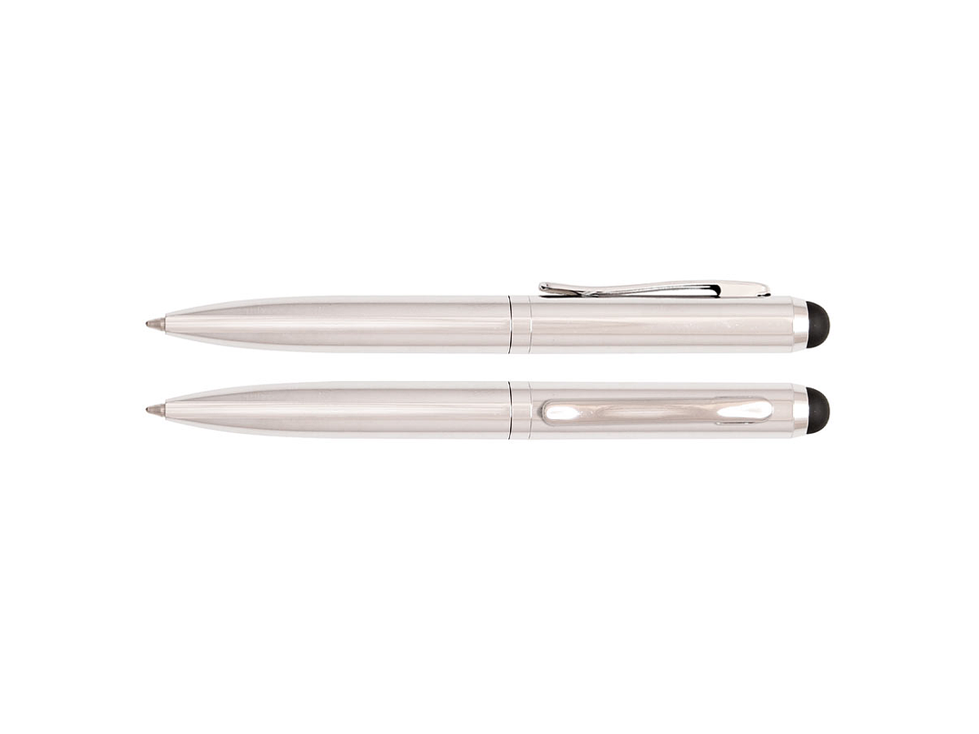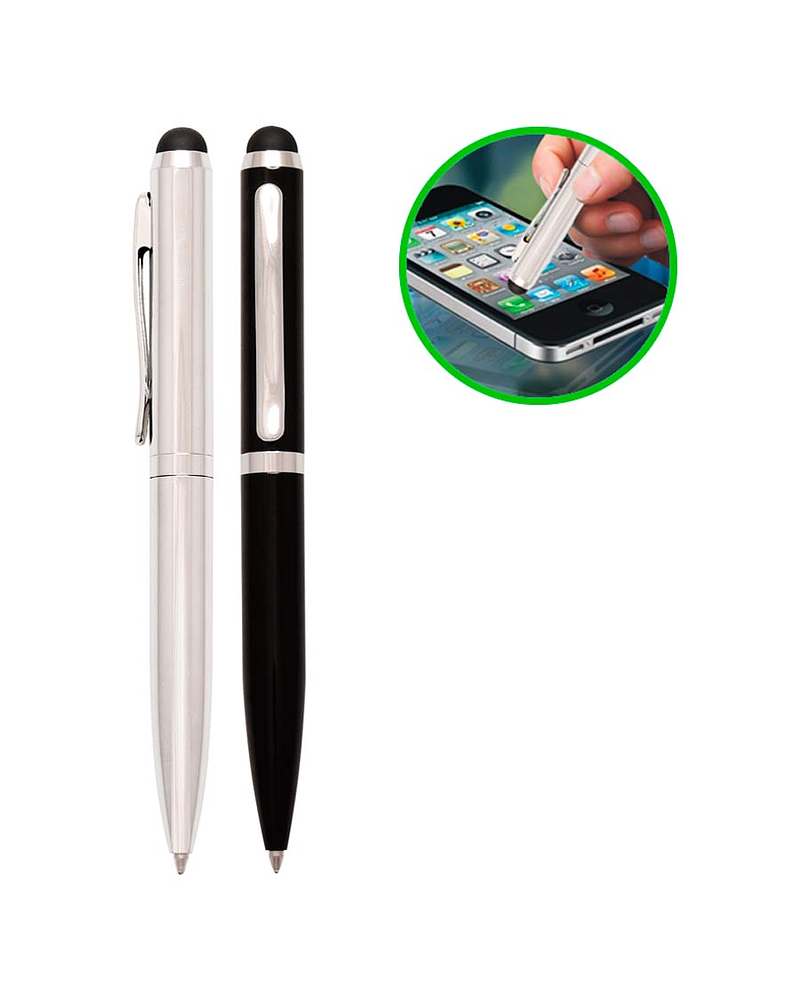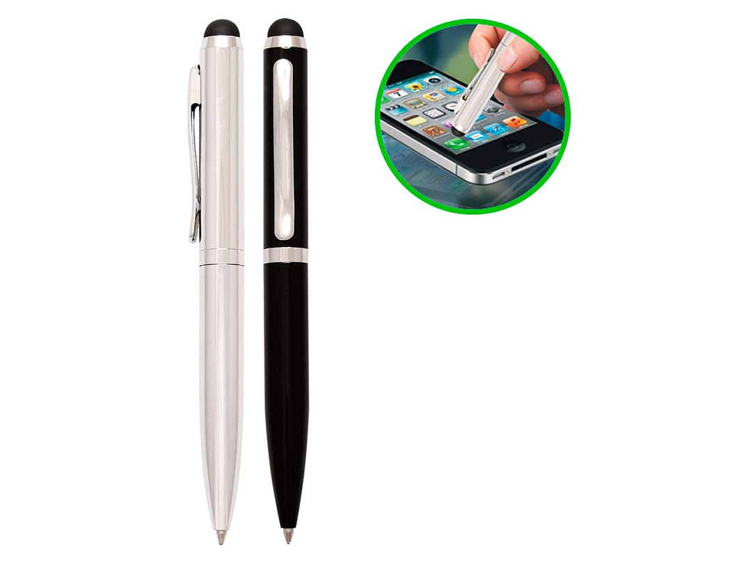 Bolígrafo Metálico modelo "Hotel", con goma posterior negra "Touch-Screen" para pantalla táctil. Escritura negra.