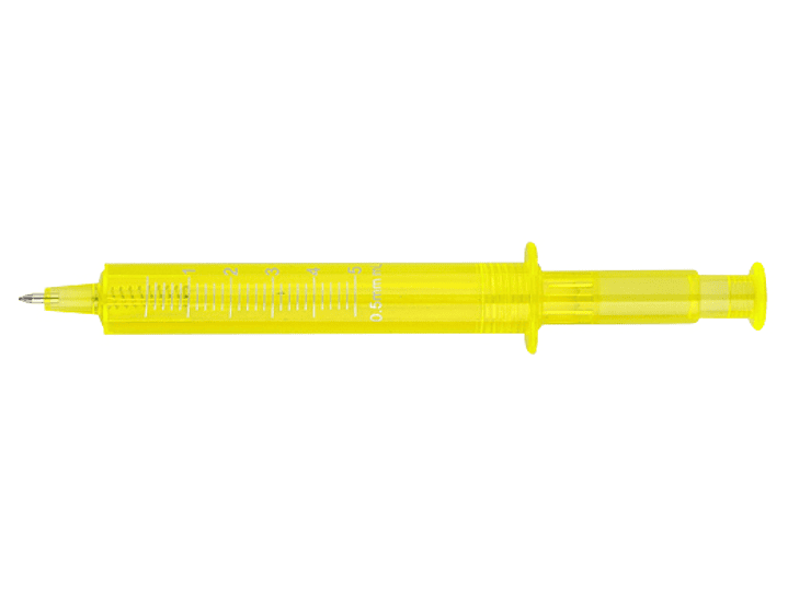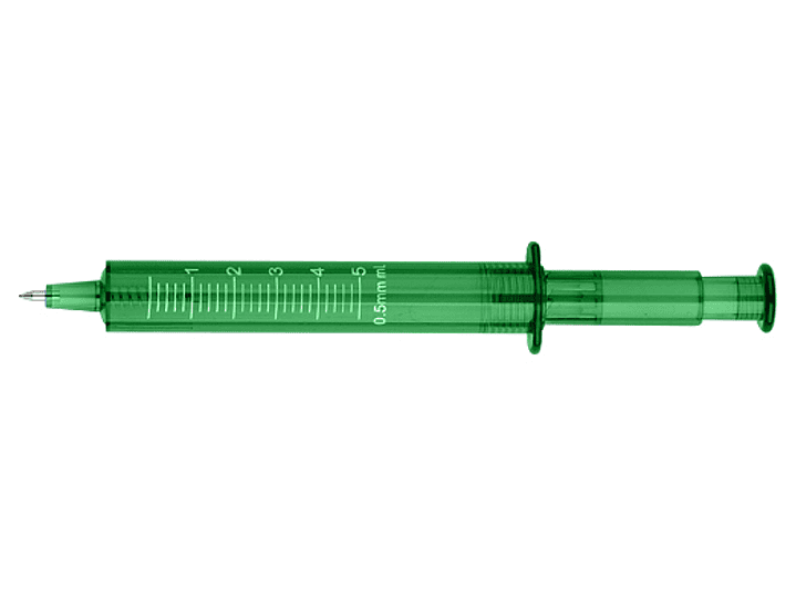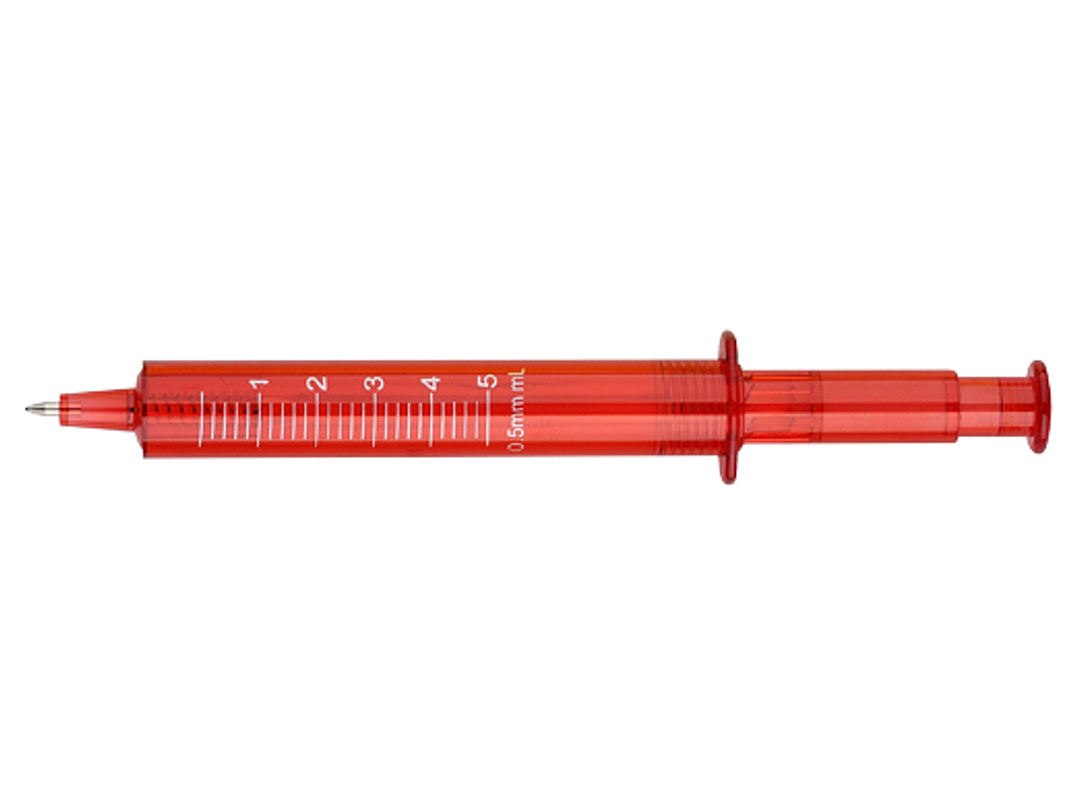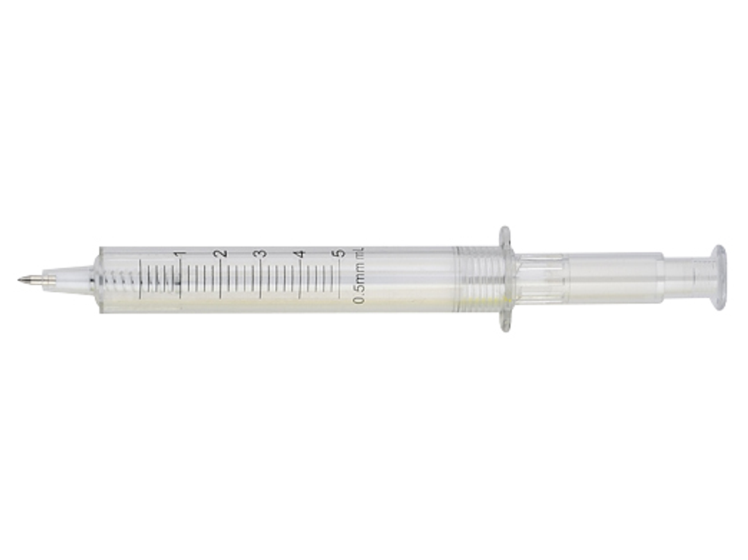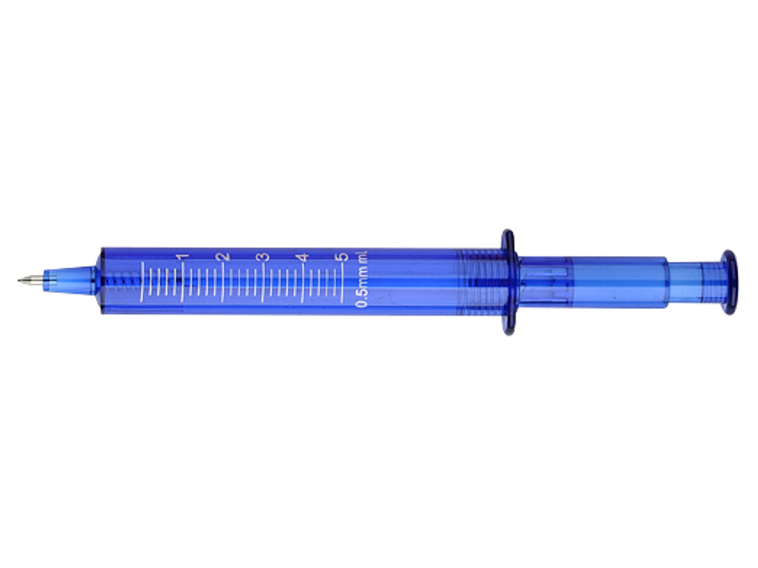 Bolígrafo plástico promocional "Jeringa". Escritura Azul.