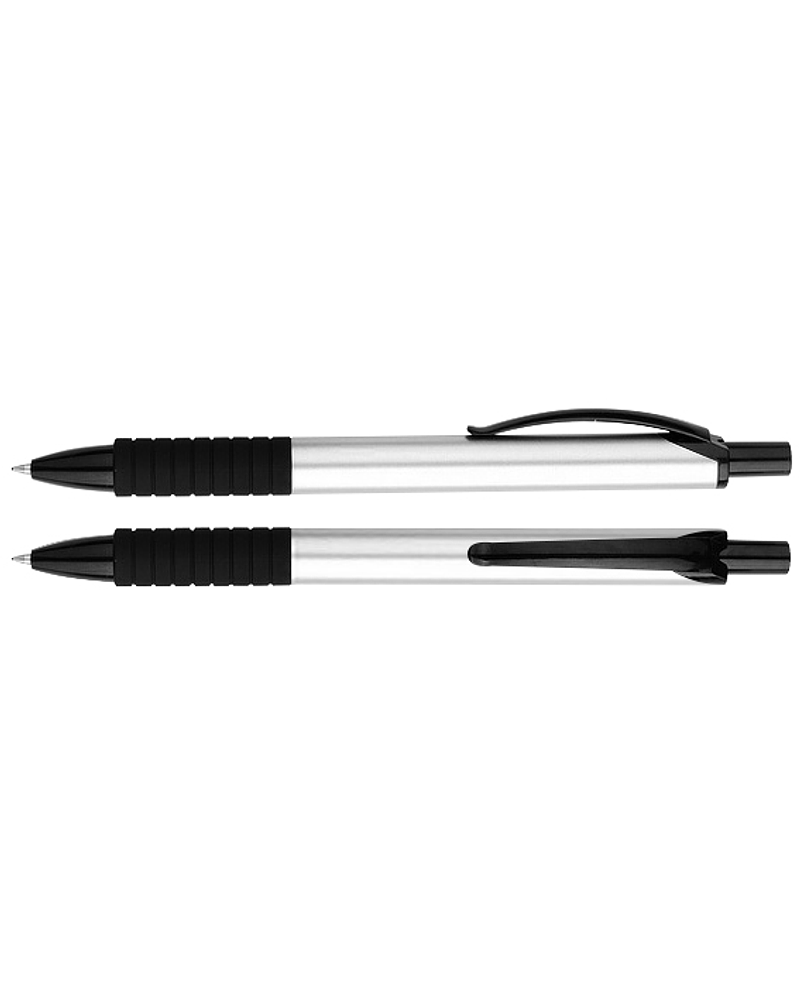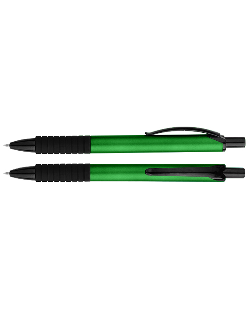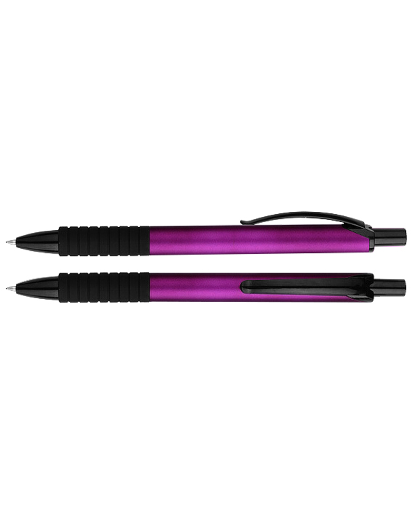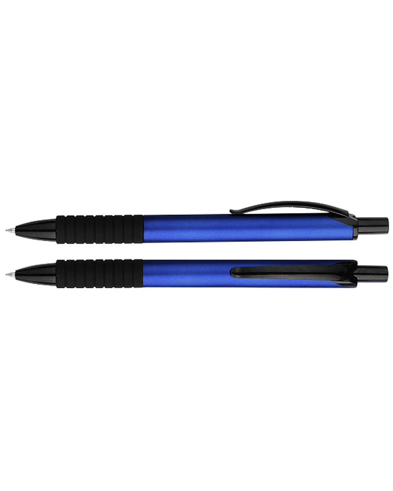 Bolígrafo "Vulcano" con cuerpo de color metalizado opaco y terminales negros. Escritura azul. No se sugiere imprimir con tinta blanca sobre cuerpo de color metalizado.