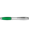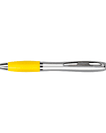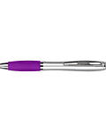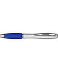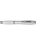 Bolígrafo plástico plateado con goma de color, modelo "Wind Satín". Escritura Azul. El Bolígrafo más famoso del mundo. Tamaño: 14 x Ø 1.2 cm.