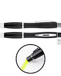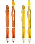 Bolígrafo plástico con cuerpo de color y puntero screen-touch al tono. Incluye práctico destacador (resaltador) de cera de color. Escritura azul.