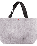 Bolsa de compras de Fieltro modelo "British". Tela Fieltro Poliéster 300g/m2. Capacidad 20 litros, tamaño 51 x 33 x 12 cm. Incluye broche rojo y manillas de poliéster negro.
