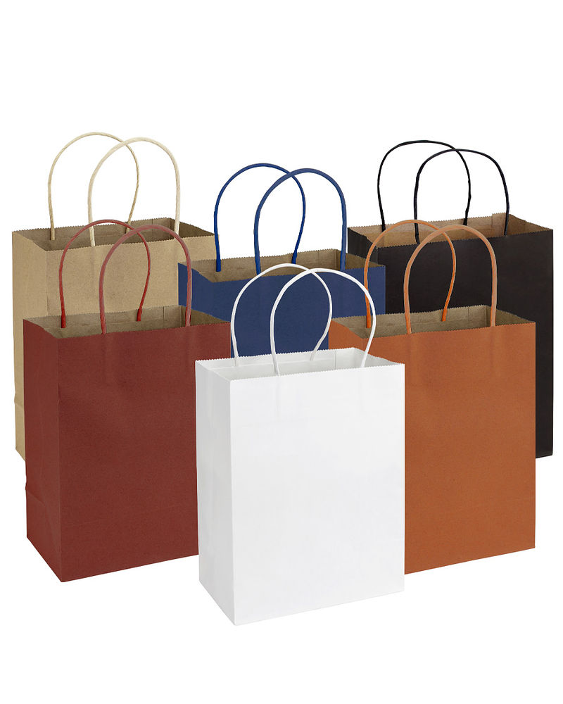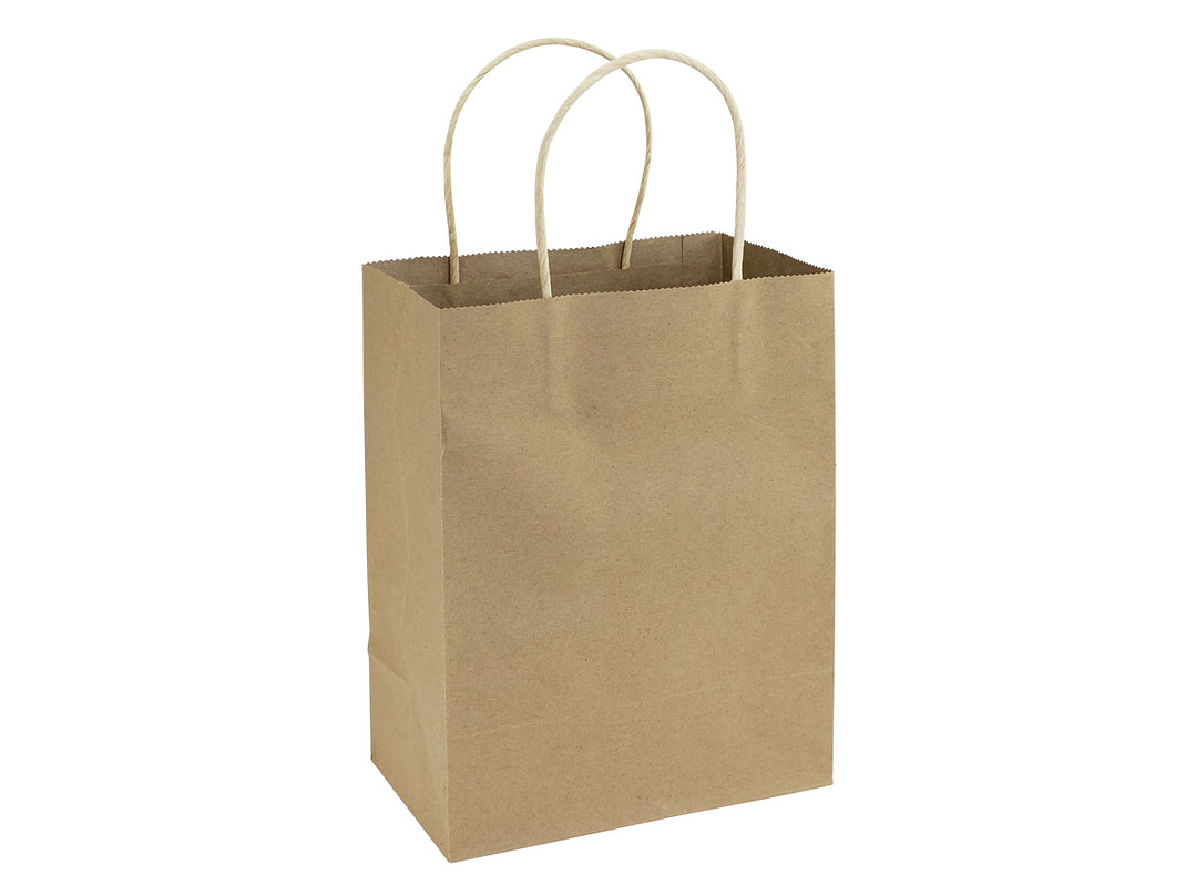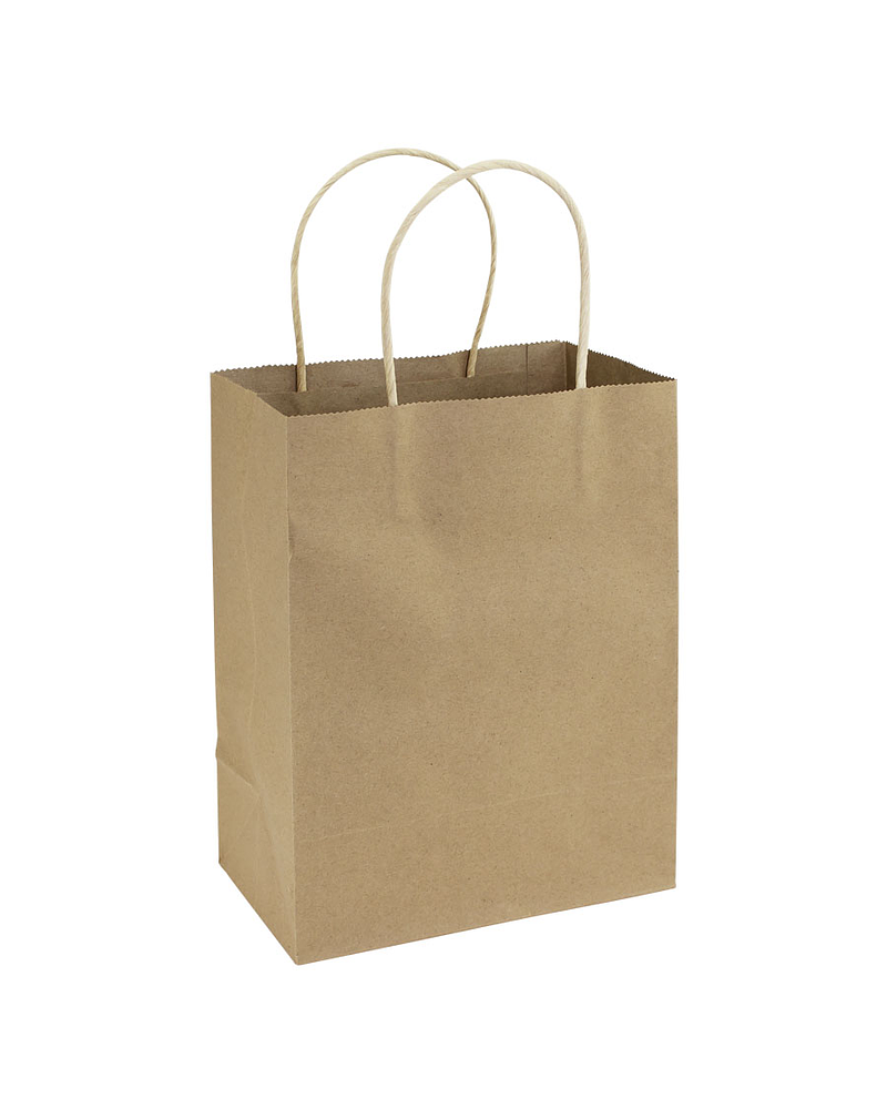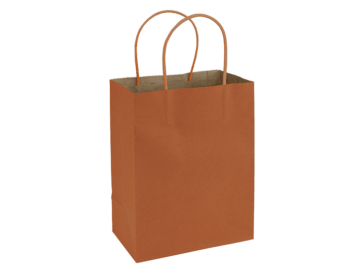 Bolsa de Papel Kraft 100% reciclable y reutilizable. Fabricada en resistente material natural de 120g/m2. Contiene asas de papel prensado al tono.