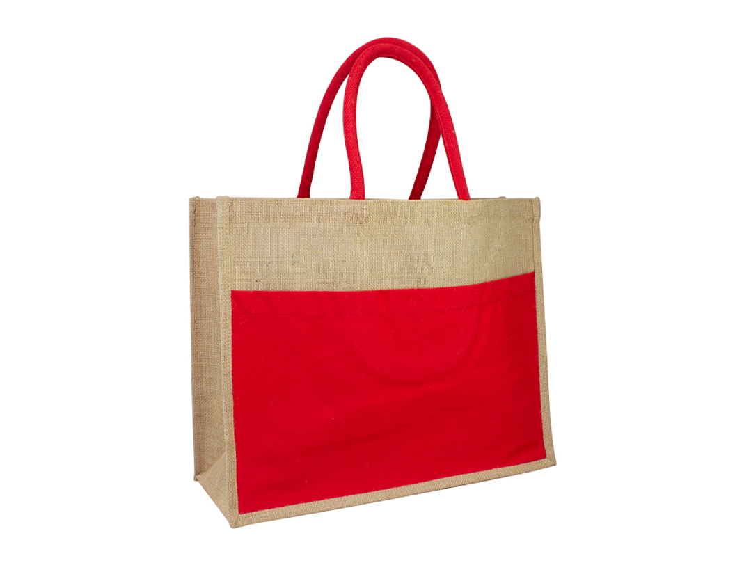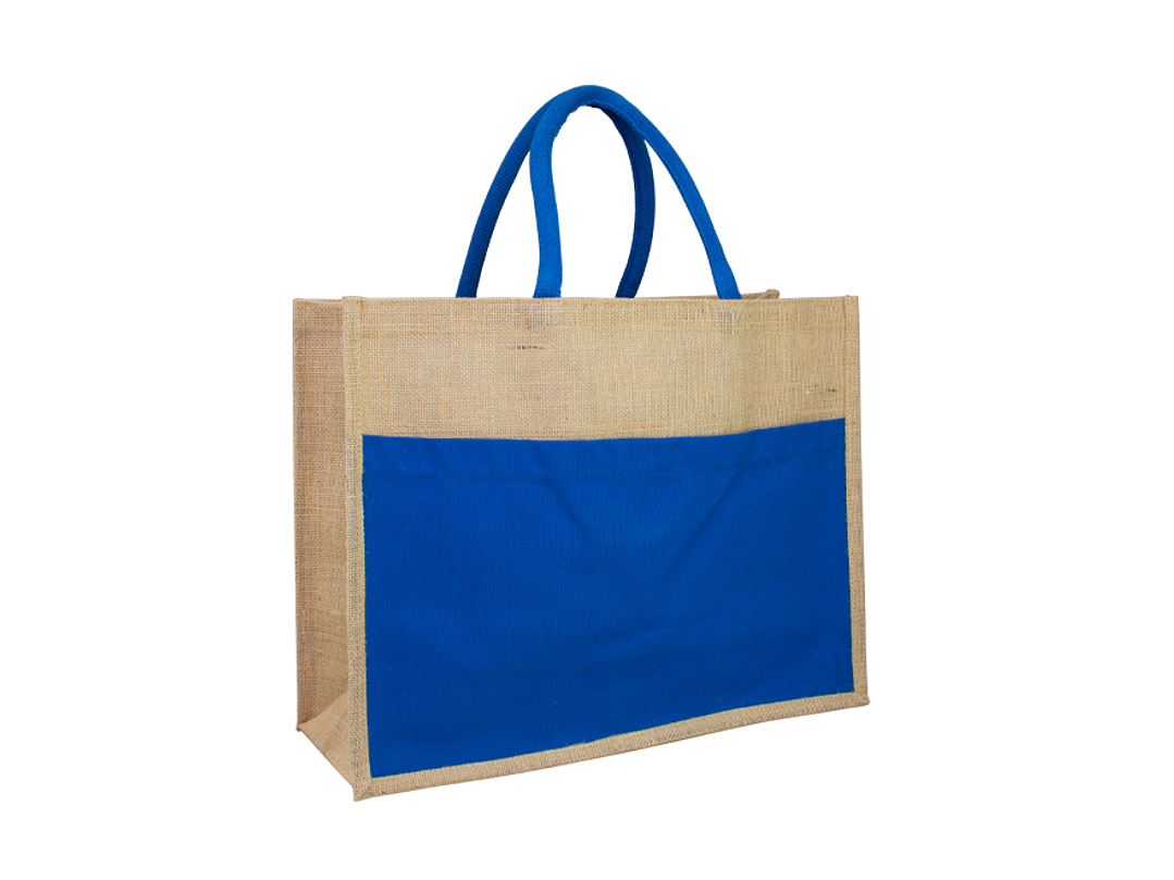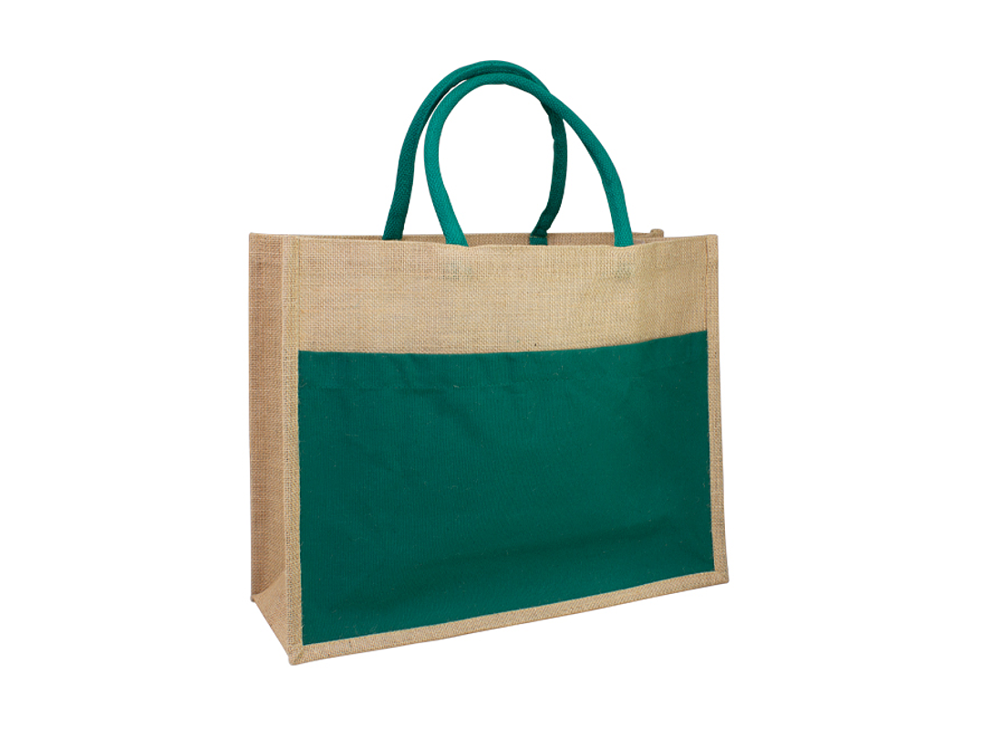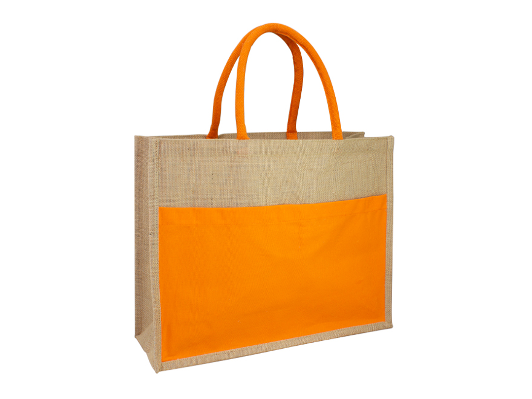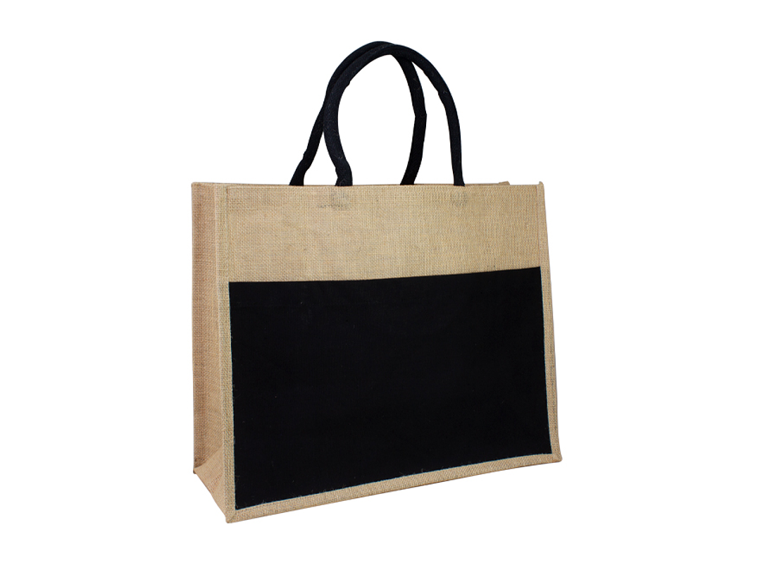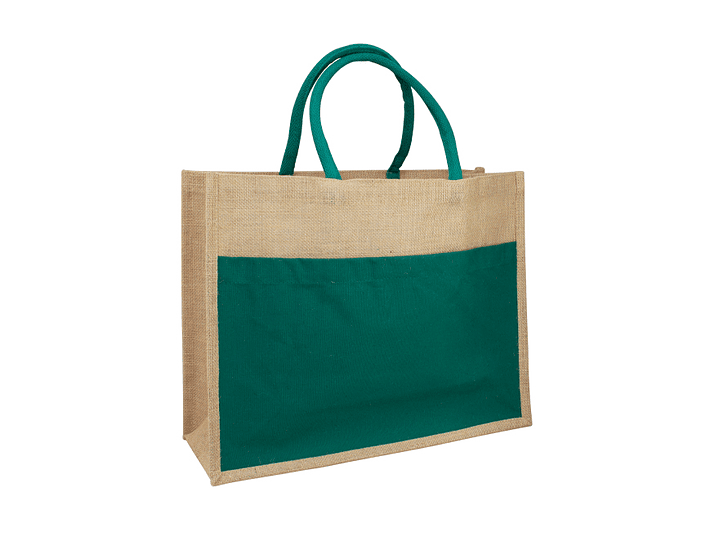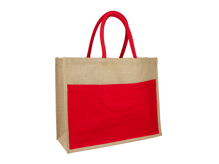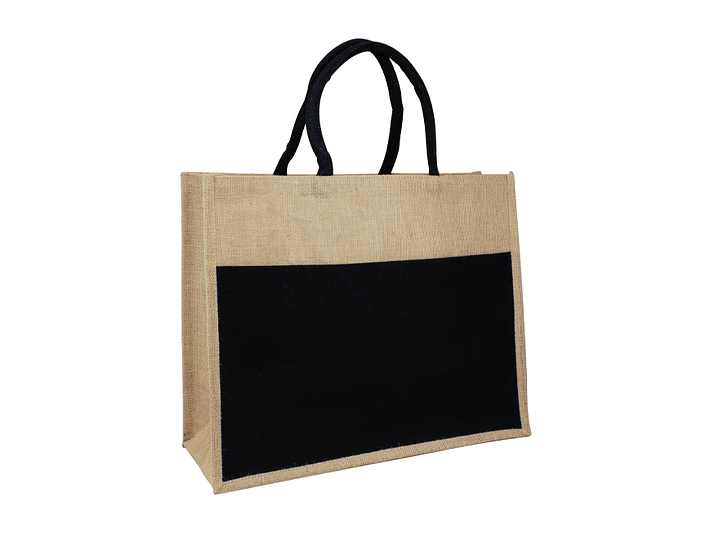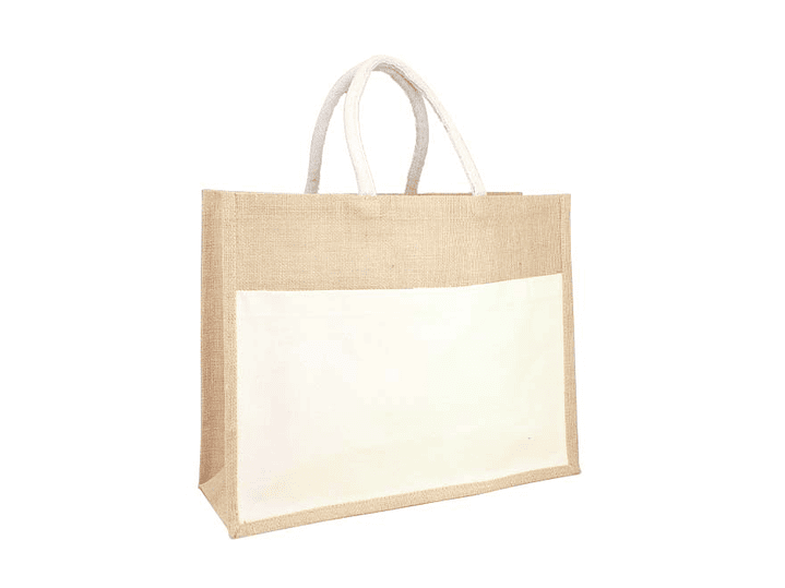 Bolso grande de Yute natural con amplio bolsillo delantero de Canvas 100% Algodón natural de 250g/m2 (9 onzas). Cuenta con 2 asas de algodón natural relleno de 40 cm. c/u aprox.
