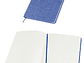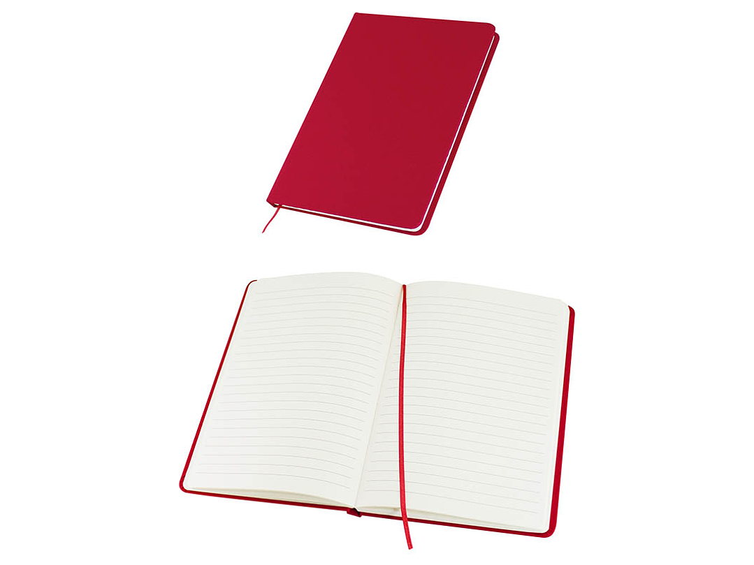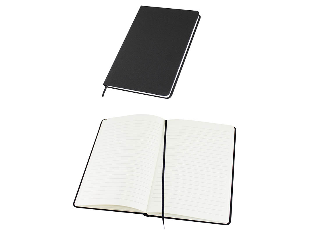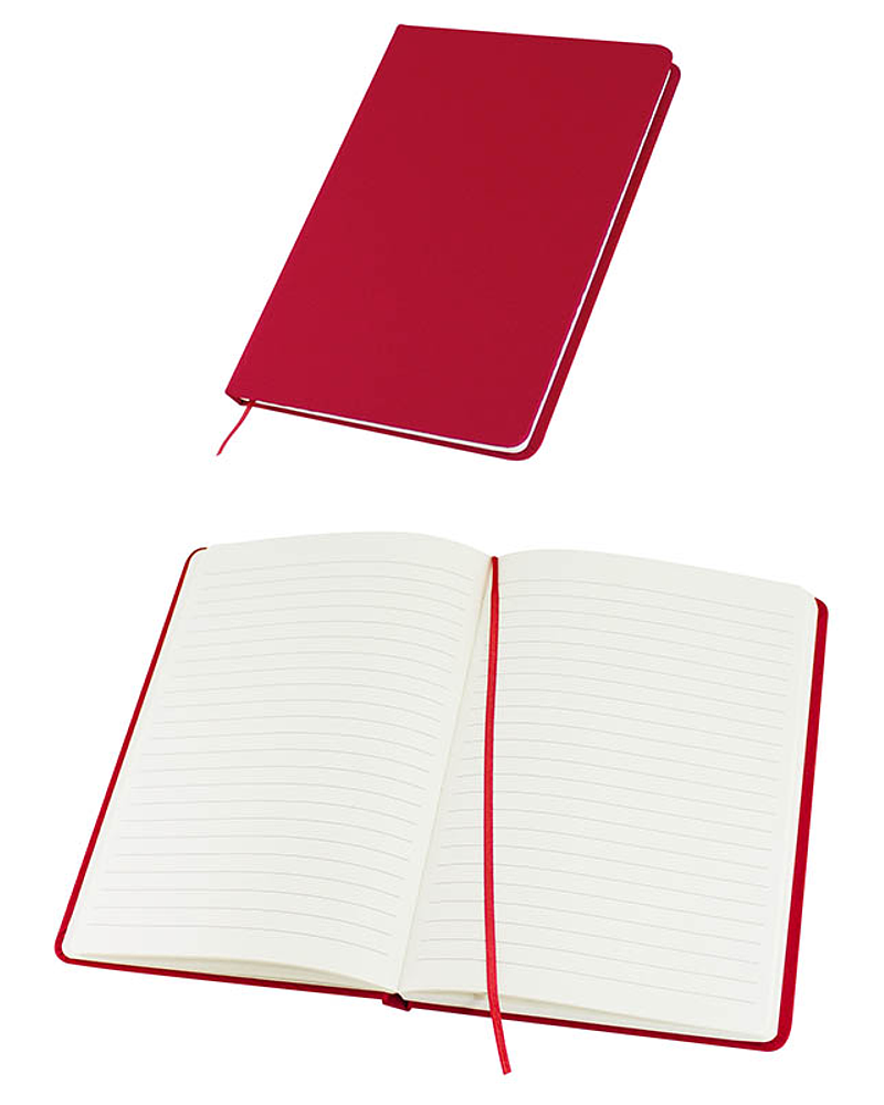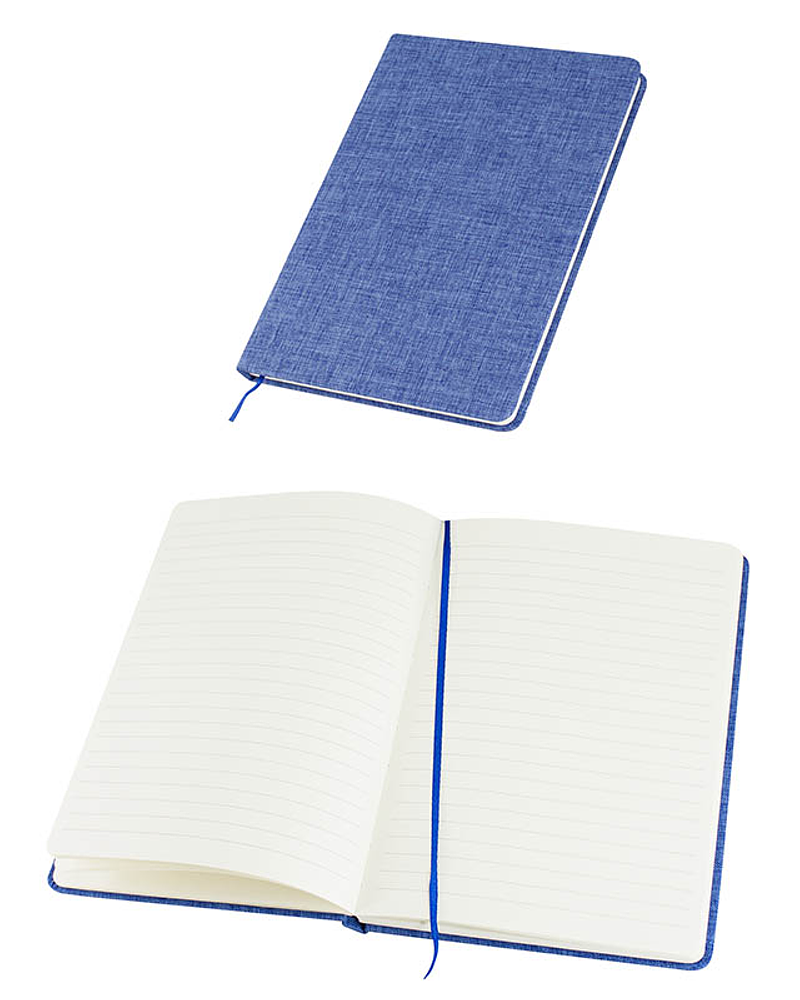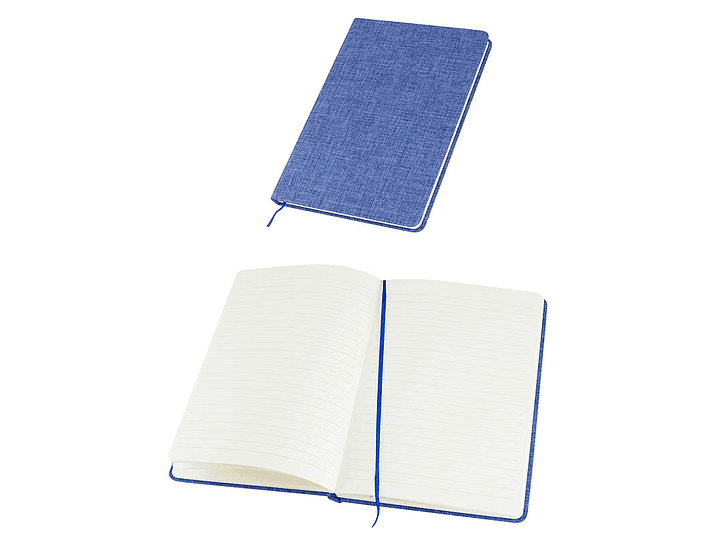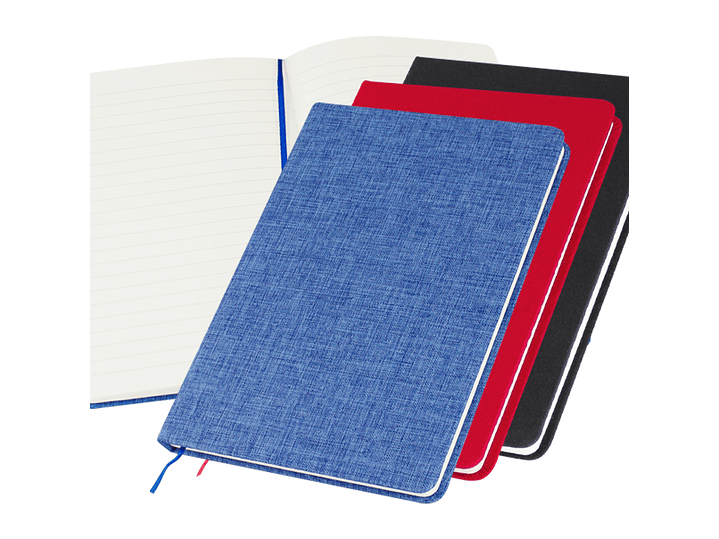 Cuaderno tamaño A5, con cubierta de cartón piedra forrada en tela lino de 2mm de espesor. Interior 80 hojas lineadas amarillas de 80gsm. Incluye banda separador de hojas al tono. Presentación individual en bolsa de polipropileno.
