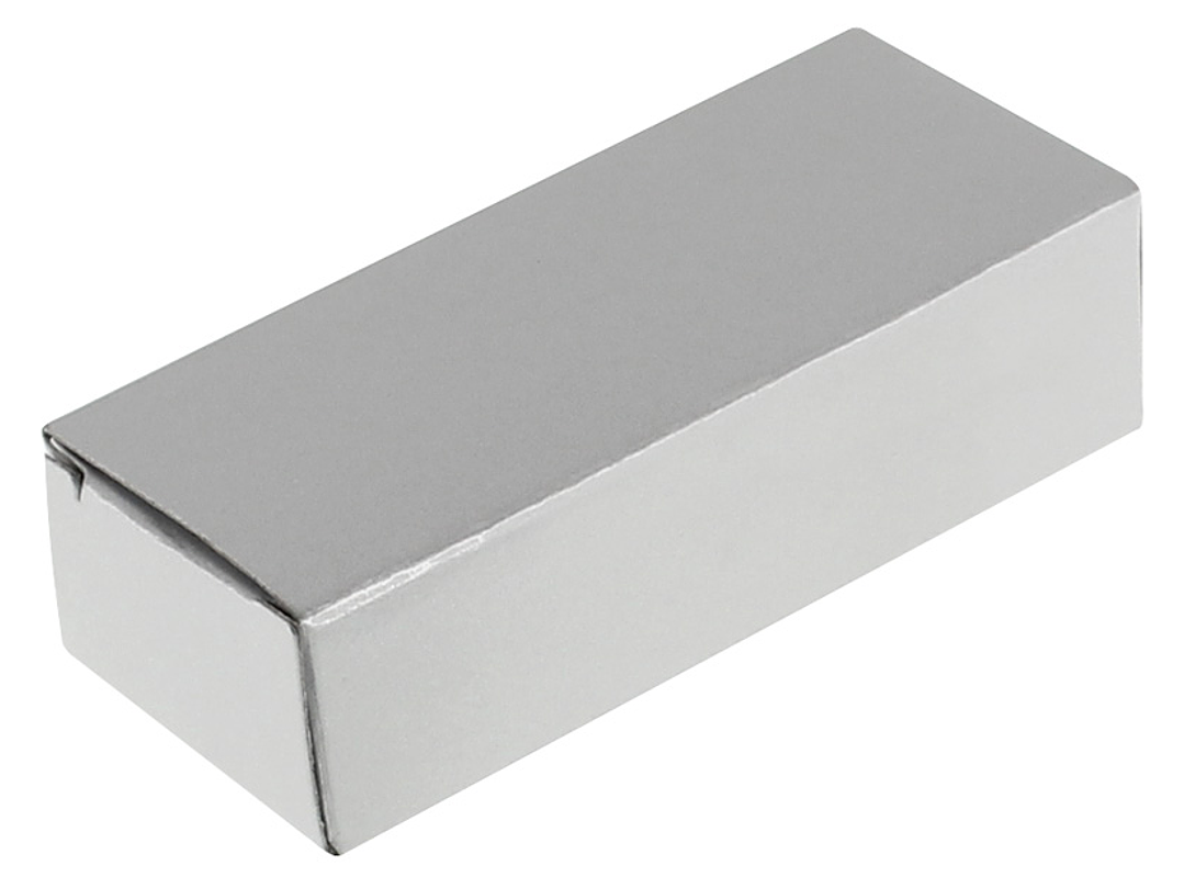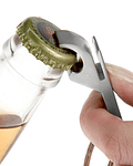 Llavero-Destapador con cuerpo plástico plateado y destapador metálico. Presentación en cajita plateada.