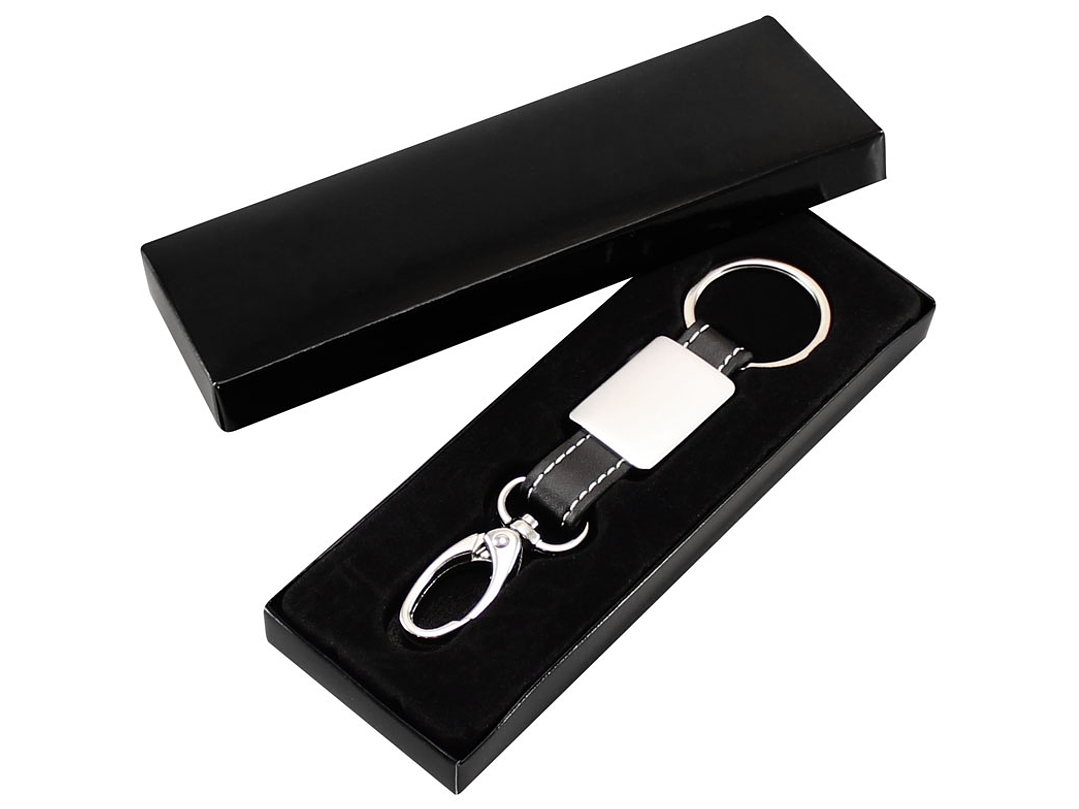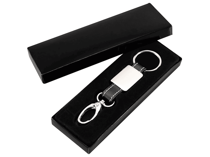 Llavero Metal-Cuero modelo "Technic". Presentación en estuche laminado negro con cuna aterciopelada.