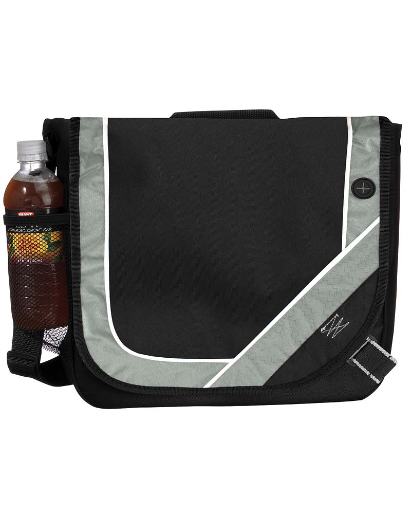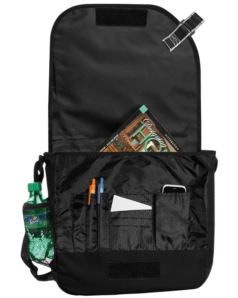 Maletín Porta documentos de tela raquelada Polyester 600D modelo "Messenger", con solapa delantera, organizador interior y salida para auriculares.