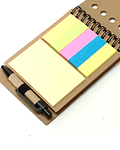 Memo set ecológico libretita con tapa de corcho. Incluye set de post-it y bolígrafo ecológico, tinta azul.
