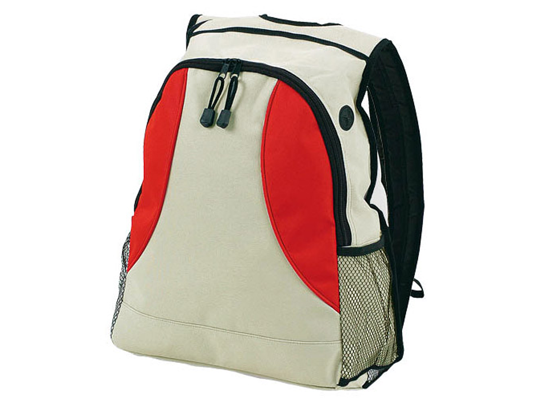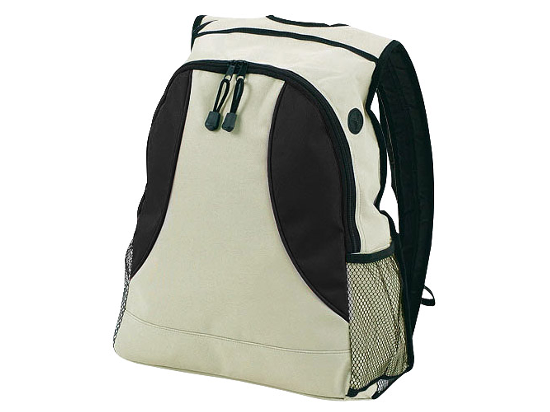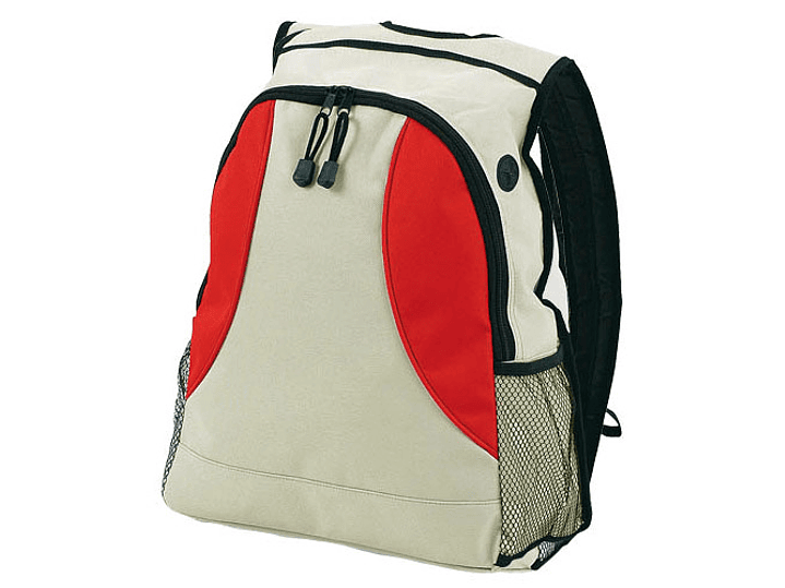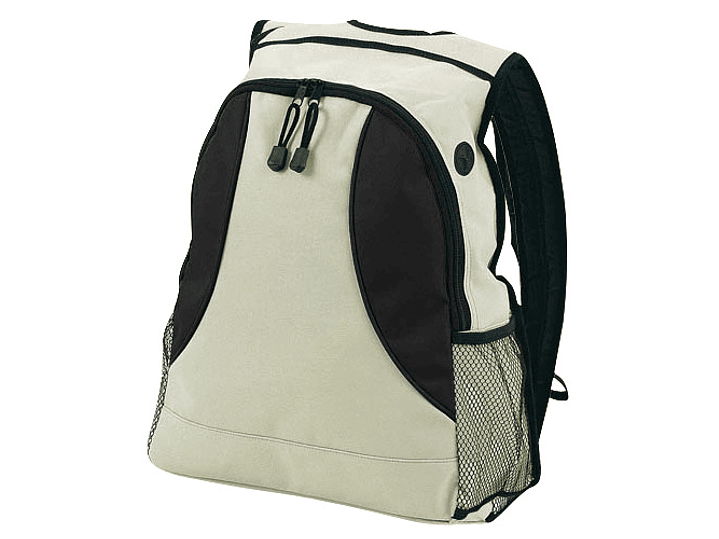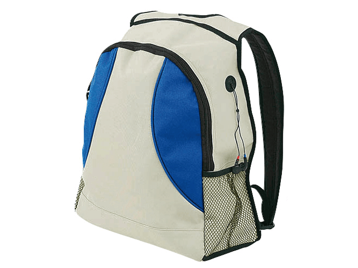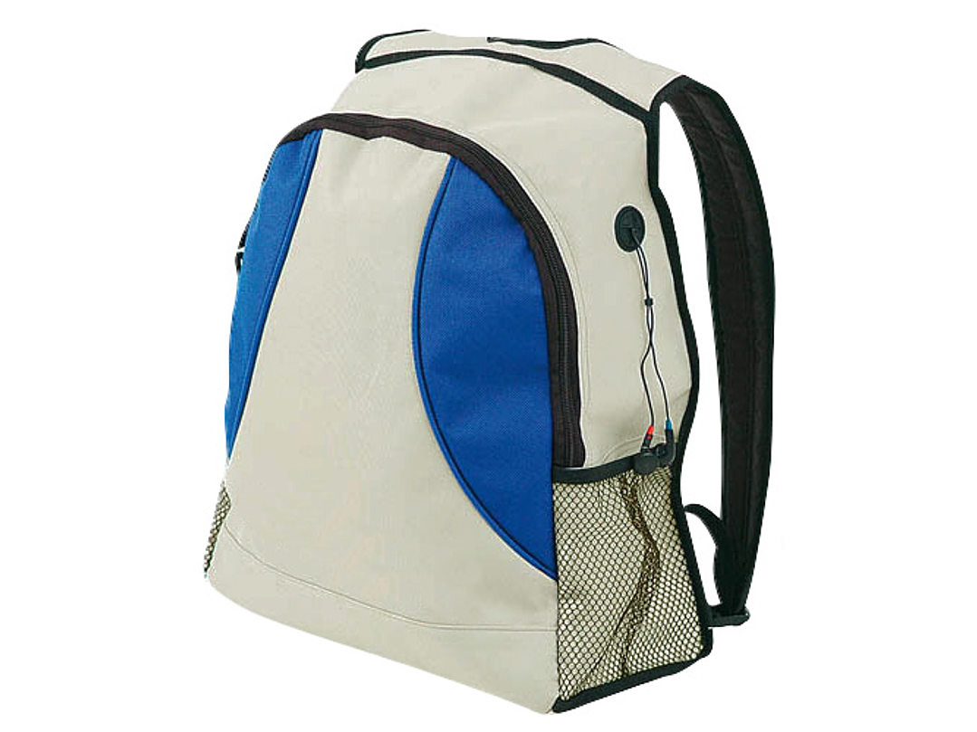 Mochila bicolor modelo "Zeus" en tela raquelada polyester 600D. Con cintas acolchadas y salida para auriculares.