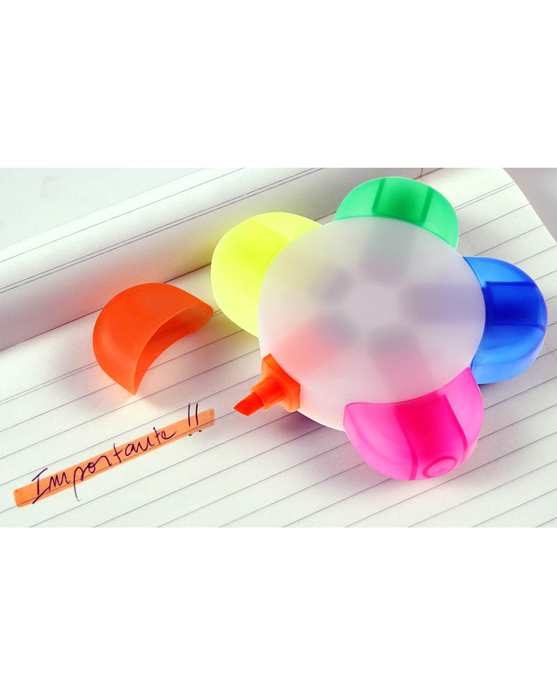 Multi Destacador modelo "Flower" con 5 destacadores de colores.