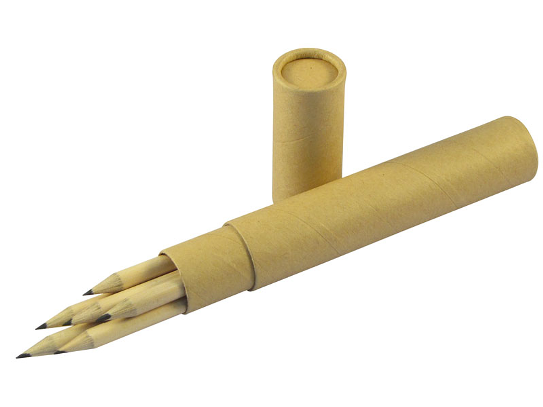 Set de 6 Lápices Grafito Negro, en Estuche cilíndrico de Cartón Reciclado.