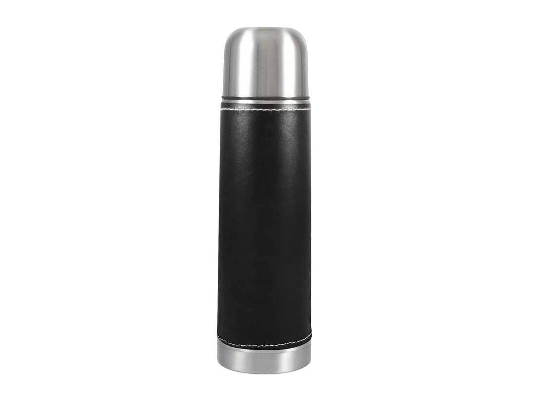 Termo de Acero Inoxidable de 1/2 Litro, con funda de PU negro (removible).